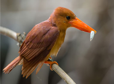 The altitude of Kui Buri NP is between 200-985 meter above sea level and the park is a watershed area for the Pranburi and Kui Buri Rivers. Almost 97% of the national park is forested with agriculture, and water resources comprising the remainder. Three main forest types are found: dry evergreen forest (62.02%), moist evergreen forest (28.87%), mixed deciduous forest (6.19%) and secondary forest (2.92%). Kui Buri NP is a major reservoir for wildlife in the country and the region with at least 250 wildlife species (48 species of mammals, 145 species of birds, 23 species of reptiles, 15 species of amphibians, and 19 species of fish). Some endangered species (EN) are found in this national park such as elephant (Elephas maximus), banteng (Bos javanicus), tiger (Panthera tigris), leopard (Panthera pardus), and Asiatic wild dog (Cuon alpinus). Vulnerable species (VU) include clouded leopard (Pardofelis nebulosa), Asian tapir (Tapirus indicus), and southern serow (Capricornis sumatraensis). Chaloem Phrakiat Thai Prachan NP has a rugged topography and is also a part of the Tenasserim Ranges. The highest peak has an altitude of 806 meter above sea level. Thai Prachan is the head waters of the Mae Prachan River, Phachi River, Mae Klong River, and Phetchaburi River. Almost all the park (97.27%) is covered with 4 types of forest, which are mixed deciduous forest (68.94%), moist evergreen forest (14.83%), dry evergreen forest (13.77%), and dry dipterocarp forest (0.71%) with secondary forest (1.75%). Thai Prachan NP contains various types of habitat for wildlife. Since the area is adjacent to Kaeng Krachan NP wildlife can easily move between the two areas. At least 268 wildlife species have been identified with 69 species of mammals, 137 species of birds, 33 species of reptiles, 21 species of amphibians, and 8 species of fish. Some endangered species (EN) are found in this park such as banteng (Bos javanicus) and tiger (Panthera tigris). Southern serow (Capricornis sumatraensis), clouded leopard (Pardofelis nebulosa) as well as asian golden cat (Catopuma temminckii) are vulnerable species (VU) found in CPNP. Other interesting wildlife in this area are banded langur (Presbytis femoralis) and sunda pangolin (Manis javanica). A fish species, Schistura balteata, is khown as the first record for Thailand.