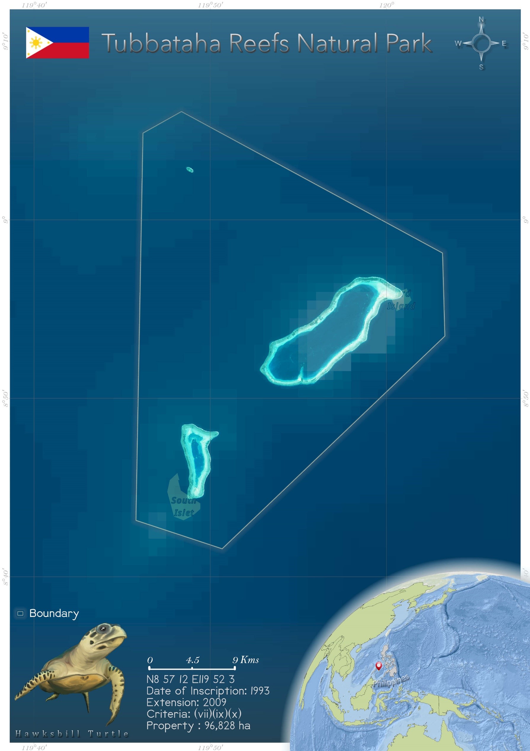 On 11 December 1993, the site was declared UNESCO's World Heritage site (Dygico et al. 2006; Subade 2009). The world heritage site also includes two units conserved by other bodies under this property; Palawan Biosphere reserve by UNESCO Man and Biosphere Program and Tubbataha Reef National Park got included in the RAMSAR list of Wetlands on 19 November 1999 (Dygico et al. 2006; RAMSAR Site Information Service).